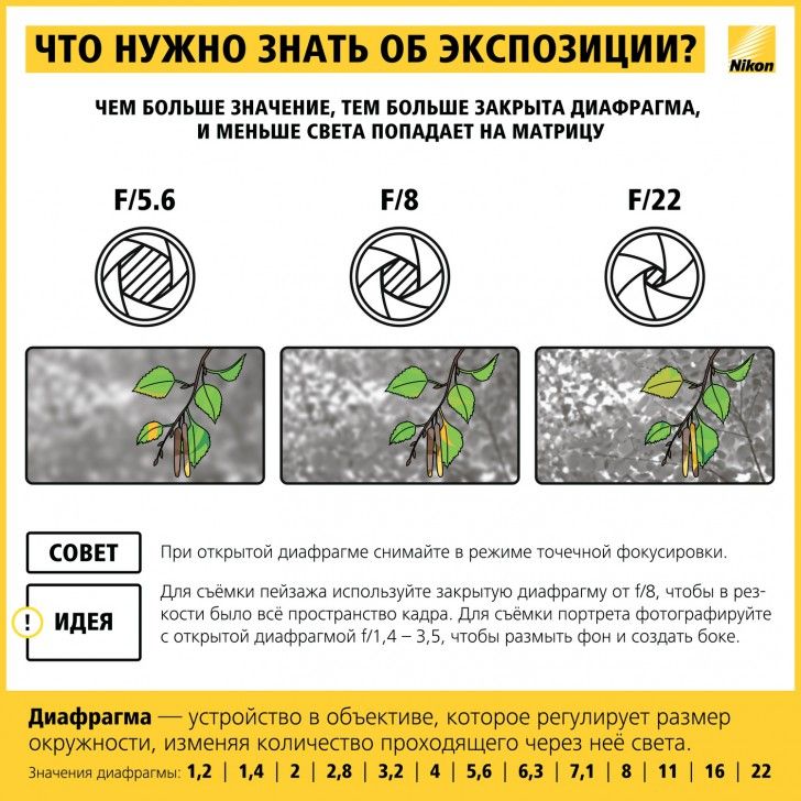 Режим приоритета диафрагмы позволяет фотографу устанавливать конкретную диафрагму, позволяя камере рассчитать правильную экспозицию и назначить соответствующую выдержку. Это позволяет фотографу изменять диафрагму и, следовательно, изменять глубину резкости изображения, в то время как камера выполняет необходимые вычисления для автоматической установки скорости затвора. Когда вы увеличиваете открытие диафрагмы (более низкие значения диафрагмы), вы получаете более высокую скорость затвора, чтобы компенсировать увеличение количества света, проходящего через объектив. Сделайте диафрагму меньше, камера даст вам большую выдержку.