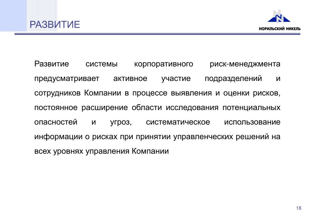 Риск может создавать ценность и играть уникальную роль в повышении эффективности бизнеса, поэтому необходимо разработать стратегии корпоративного управления рисками, которые помогут бизнесу ориентироваться в процессе принятия решения о том, какие риски принимать.