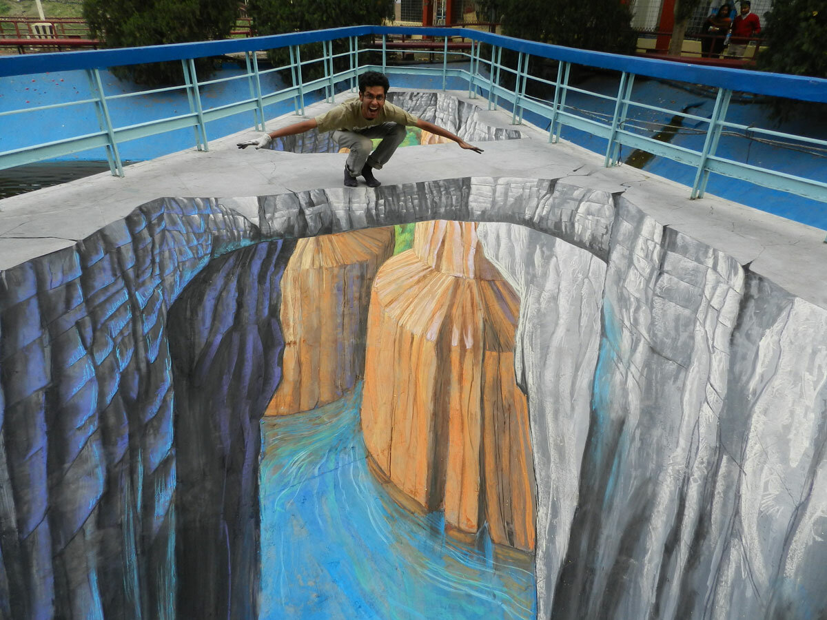 3D-стрит-арт настолько захватывает воображение и дает такой большой приток зевак и туристов, что мгновенно становится местной достопримечательностью. А если увидеть эти реалистичные водопады, обрывы и мосты живьем, просто взрывается мозг.
