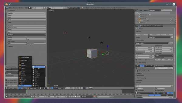 Затем откройте меню «Add» в нижней части экрана и выберите нужный тип объектов, например, фигуры (Mesh), а затем саму фигуру. После ее добавления она появится около курсора. Так вы можете добавить любой объект.