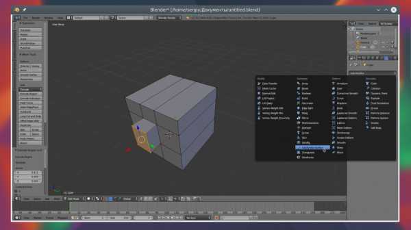 Здесь я бы хотел обратить ваше внимание на одну очень важную вещь. Если вы добавляете меш в Объектном Режиме – будет создан новый объект отдельный от всех остальных. Если же вы добавляете меш в Режиме Редактирования он станет частью объекта, в режиме редактирования которого вы находитесь. В примере ниже куб был создан в режиме редактирования UV-сферы:
