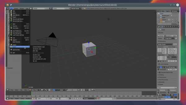 Затем вам нужно выбрать место для сохранения и нажать «Save blender file». Работа будет сохранена в формате Blender, и вы сможете продолжить ее редактировать. Но если вам нужна обычное изображение, в меню «File» выберите пункт «Export», затем выберите формат нужной картинки: