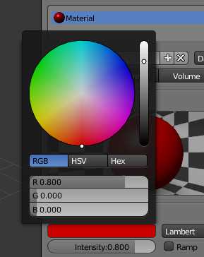 В этом разделе нас интересует панель Preview (предпросмотр) и закладка Diffuse. Щелкните по цветовому прямоугольнику и откроется редактор, в котором вы сможете выбрать нужный цвет и интенсивность (контролируется вращением колесика мыши).