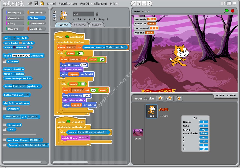 Виртуальная и дополненная реальность изменили мир видеоигр. Видеосенсор — одно из многих расширений Scratch; это позволяет вам войти в игру через веб-камеру вашего компьютера. Помещение игрока в игру открывает для программиста множество различных возможностей, поскольку теперь игроки могут взаимодействовать с окружающим миром и персонажами.