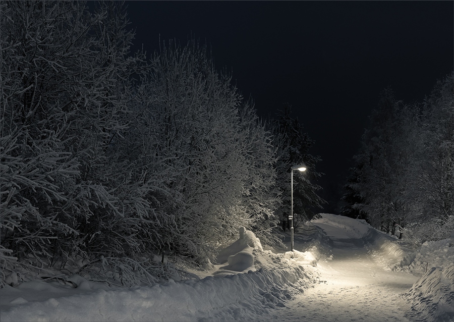 Ночная съемка города — это тот самый случай, когда прогноз погоды имеет значение. Не важно, что падает сверху — моросящий дождь или снежная пороша, ночное небо превращается в необычный естественный фон, придающий фотографии особый шарм. Чтобы во всей красе проявить в кажре падающий снег, нужно установить короткую выдержку, открыть диафрагму и повысить ISO. И не нужно бояться больших шумов — они чудесным образом растворяются в снегопаде, придавая фотографии вьюжную атмосферу…