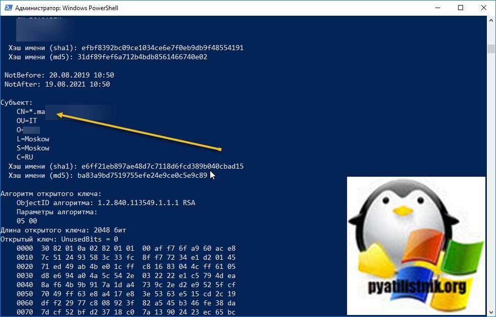 Выбор сертификатов При работе с сертификатами вам понадобится способ фильтрации и выбора сертификатов для выполнения определенных операций. В следующих примерах необходимо начать с перечисления всех установленных сертификатов в хранилище корневого ЦС. Get-ChildItem -Path Cert:\CurrentUser\Root\ Возвращаемые объекты будут объектами сертификатов, которые вы можете использовать в следующих примерах. Общие расширения уже доступны в качестве свойств объектов сертификата. В приведенном ниже примере вы используете Get-ChildItem -Path Cert:\CurrentUser\Root\ | Свойства Get-Member -MemberType Рисунок 9. Свойства, доступные для возвращенных объектов сертификата. Как видно на рис. 9, некоторые из этих расширений, например Issuer, помогают найти нужный сертификат. Расширения предоставляют информацию о сертификате, например, кому он выдан, для чего его можно использовать и любые ограничения на него. В более сложных случаях использования вам может потребоваться найти сертификаты по другим расширениям, например по используемому шаблону сертификата. Сложность заключается в том, что значения этих расширений возвращаются в виде массива целых чисел. Эти целые числа соответствуют закодированному содержимому ASN.1. Существующие ScriptProperties, доступные для объекта, показывают примеры взаимодействия с ними. В приведенной ниже команде вы вручную извлечете использование ключей, чтобы увидеть эту взаимосвязь. ((Get-ChildItem -Path Cert:\CurrentUser\Root\ | select -First 1).Extensions | Where-Object {$_.Oid.FriendlyName -eq "Использование ключа"}).format($true) Новая часть, которую мы вводим в приведенную выше команду, — это метод форматирования, который выполняет декодирование ASN.1. Вы передаете ему логическое значение (например, $true) выше, чтобы определить, хотим ли мы, чтобы возвращаемый объект был однострочным или многострочным. Вы будете использовать значение Thumbprint из сертификата на рис. 7 в приведенной ниже команде. Значение Thumbprint задается как переменная PowerShell и используется для выбора конкретного сертификата в приведенных ниже командах. $thumb = "cdd4eeae6000ac7f40c3802c171e30148030c072"
