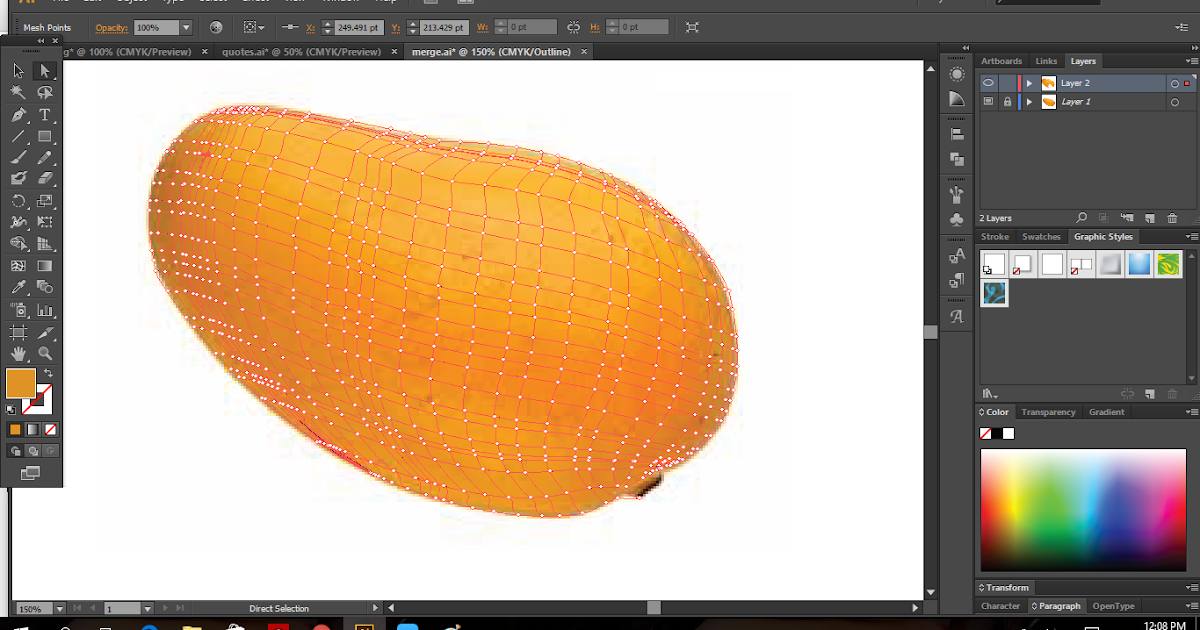 Теперь мы начнем использовать инструмент «Сетка градиента», а также инструмент прямого выделения.