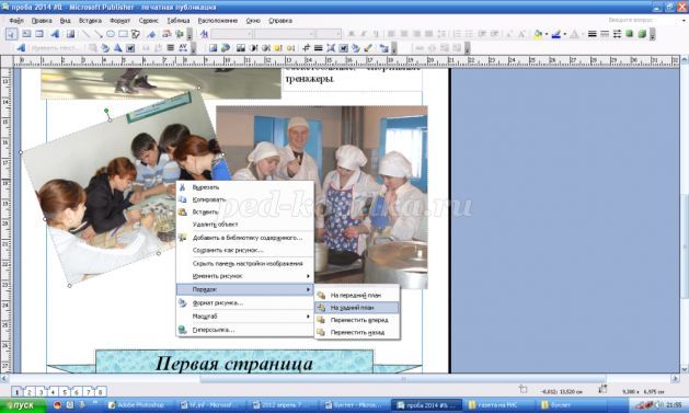Теперь нам нужно придумать и впечатать сам текст готовой статьи. Если у вас текст статьи уже набран в Word, то вставить его в газету очень просто: открываем папку на рабочем столе «Материал для мастер-класса», которую я для вас приготовила, затем открываем файл «Текст статьи», выделяем текст, удерживая левой кнопкой мыши, нажимаем правую кнопку мыши, затем «Копировать», возвращаемся в публикацию газеты, выделяем прежний текст статьи, нажав на клавиатуре кнопку «Delete», нажимаем правую кнопку мыши, затем «Вставить».
