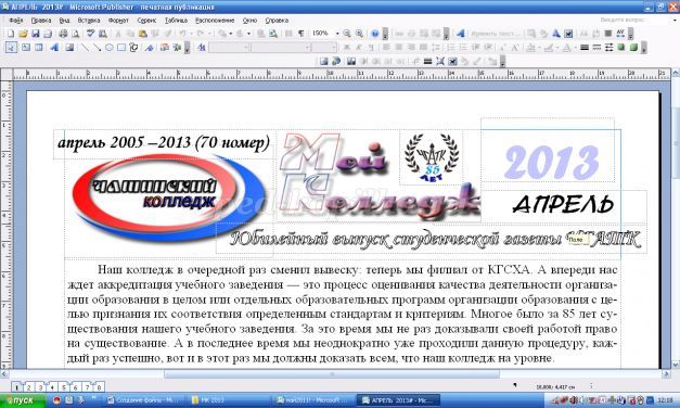 Я вам предлагаю использовать в работе по верстке вашей газеты самую простую и доступную программу Microsoft Office Pablisher, она присутствует почти во всех версиях программного обеспечения Microsoft Office – 2003, 2007, 2010, 2013.