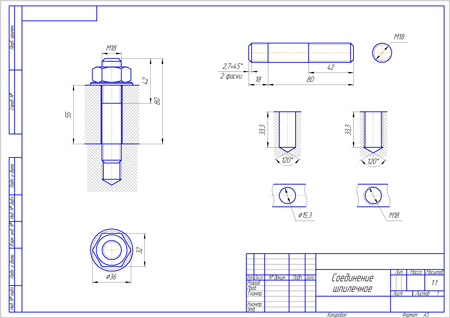 ввинчивания посадочного конца шпильки. Задание выполняется на формате А3.