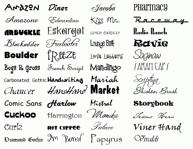 К скриптовым шрифтам относятся следующая коллекция шрифтов — каллиграфические, рукописные или готические.