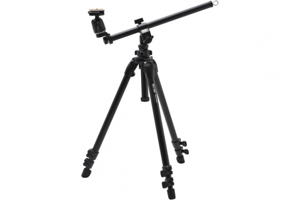 Этот универсальный штатив также можно установить на горизонтальной стойке, что делает его идеальным для съемки сверху. Поскольку штатив тяжелее некоторых других компактных штативов, он может прочно удерживать съемную установку скромных размеров. Ножки фиксируются с помощью поворотных ручек, а также могут позиционироваться под разными углами, что делает его очень удобным фотографическим инструментом.