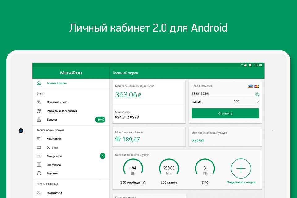 - проверять остатки подключенных пакетов и интернет-трафика;