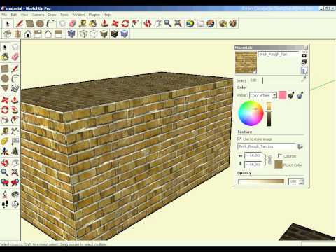 Когда выбран этот инструмент, появляется окно «Материалы». В меню текстуры сгруппированы по разновидностям: «Металл», «Древесина», «Ковры и ткани» и т.д. Выбрав текстуру, можно перейти на вкладку правка. Материал можно сделать более темным или светлым, можно создать на его основе новый или загрузить в качестве текстуры любой графический файл, а также отрегулировать степень прозрачности. Когда материал готов, можно приступать к «окрашиванию», щелкая правой клавишей мыши по каждой плоскости объекта.