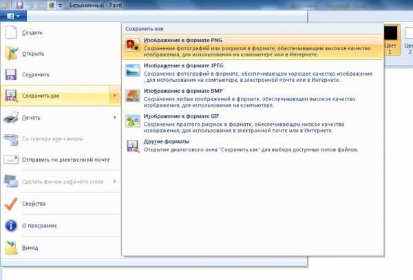 - Выбираете расширение *.png или *.jpg, сохраняете файл.