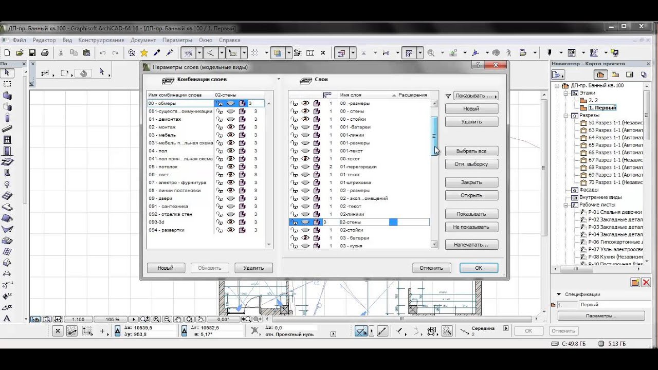 Работа со слоями в архикаде это не интуитивно понятная вещь, к которой каждый приходит сам. Можно очень долго работать в программе без понятия о слоях и панели навигатора. Но если ваш проект включает в себя огромное количество повторяющихся чертежей одного и того же этажа или плана, то с комбинациями слоев вам будет жить значительно легче.