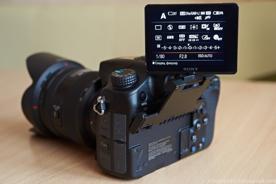 В этом коротком видео ниже вы можете увидеть шарнирный ЖК-дисплей Sony A77: