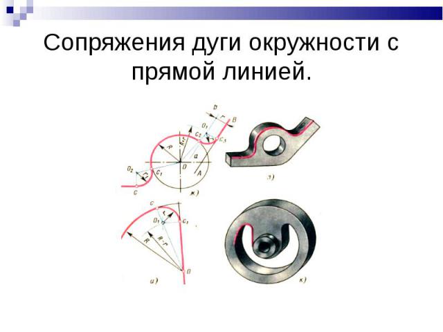 Цель урока: рассмотреть основные виды сопряжений ,узнать о том, как построить сопряжение углов, прямых линий, окружностей и дуг, окружностей с прямой.