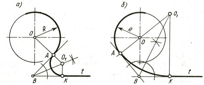 Завершая построение, следует из центра С радиусом Rс провести дугу окружности от точки К1 до точки К2.