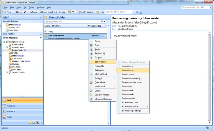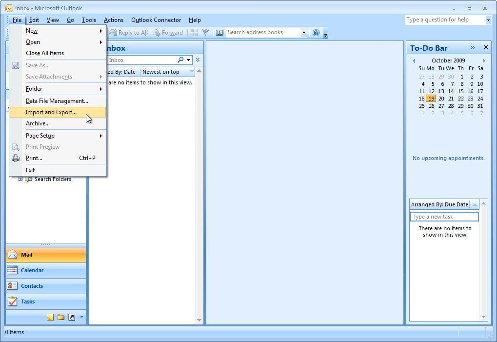 Импорт почты из файла PST с помощью Outlook 2007