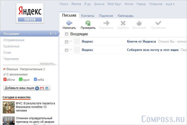 Все, почтовый ящик на сервисе Яндекса создан и вы можете им сразу пользоваться.
