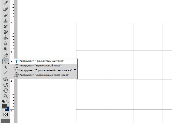 Рисовать таблицу в фотошопе мы научились, давайте же научимся ее заполнять. Поможет нам в этом инструмент «горизонтальный текст». Его цвет мы можем выбрать на палитре, как было описано выше.