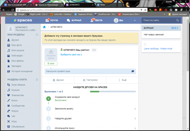 С помощью центрального раздела на spaces зоне обмена клиенты могут заниматься загрузкой своих личных файлов или поиском интересного контента в удобном каталоге. Сервис спейсес.ру обладает списком функций, которыми наделены социальные сети. Следовательно, пользователи обладают возможностью бесплатно производить загрузку со страниц spaces понравившейся музыки, видео и игровых приложений, вступать в группы, личные дневники вести, комментировать записи.