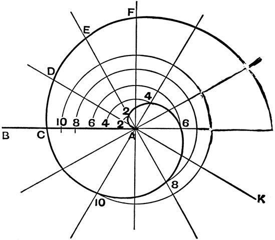 Спираль – это кривая, которая «исходит из точки и движется дальше по мере вращения вокруг точки».