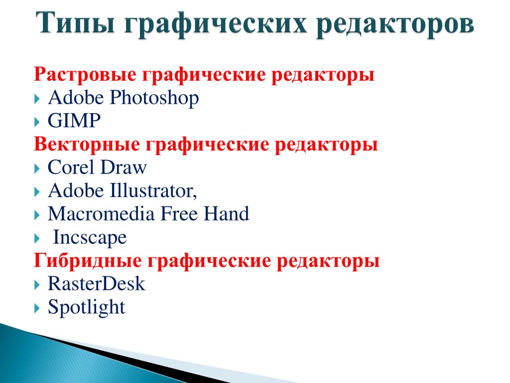 Графические редакторы, предназначенные для работы с растровыми изображениями, называются растровыми редакторами . Наиболее распространены такие редакторы, как Adobe Photoshop, Microsoft Paint, входящий в состав Windows.