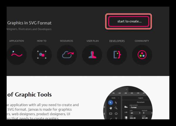 - Для запуска веб-приложения в своем браузере перейдите по ссылке выше и щелкните по кнопке «Start to create».