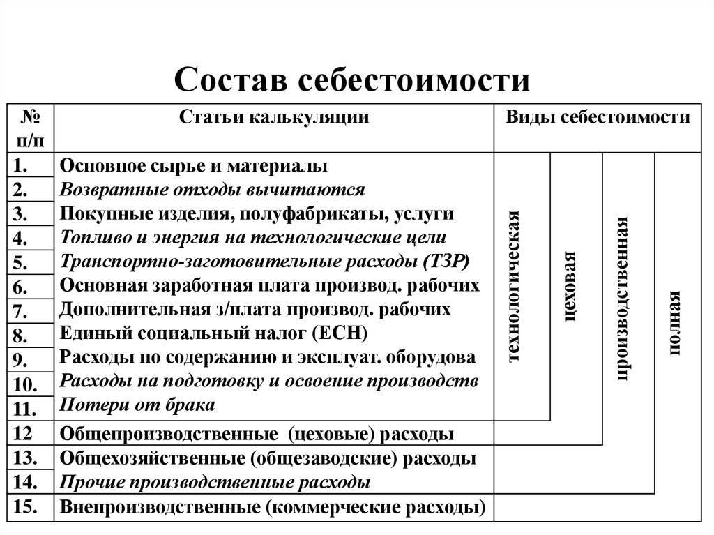 - Стоимость производства и сбыта
