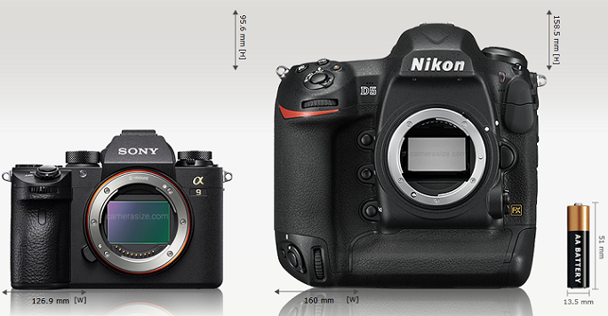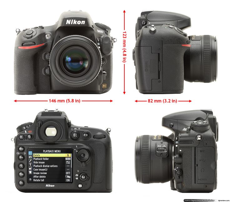 Самой компактной камерой является Nikon DF. Наибольший размер имеют Nikon D800 и Canon 5D III. Камеры Nikon D610 и Canon EOS 6D не слишком компактны. Они заняли среднюю позицию в данном рейтинге.