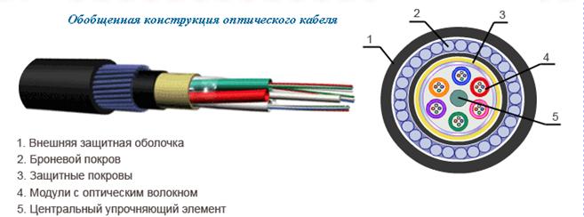 - Оптический кабель, состоящий из оптических волокон, находящихся под общей защитной оболочкой.