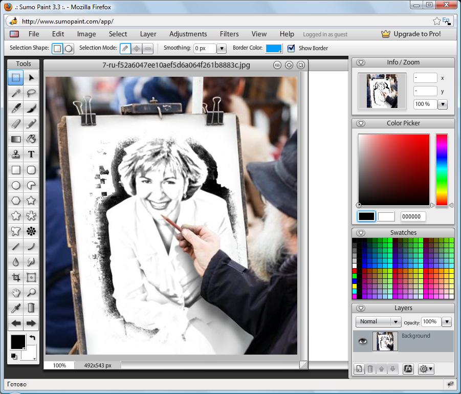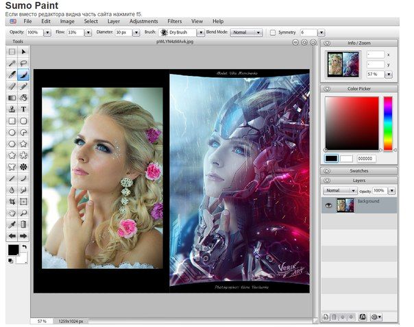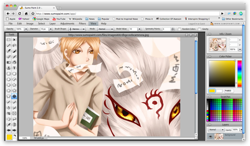 Sumo Paint — бесплатный графический онлайн-редактор, основанный на Flash-технологиях. Функционально очень похож на Photoshop.