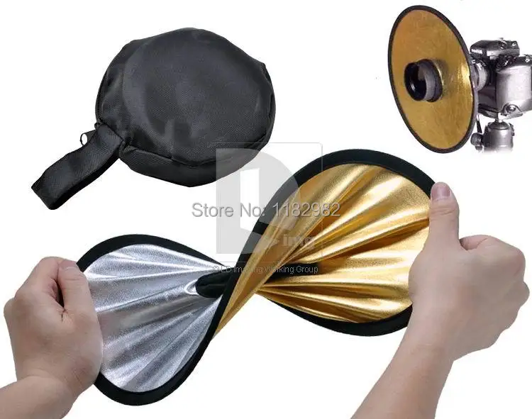 Отражатели бывают от 30 до 200 см в диаметре. Одни нужны для предметной съёмки мелких объектов, другие для портретов, третьи — для групповых снимков. Фото: nazya.com, fotoshans.ru