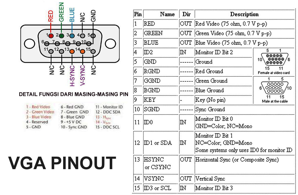 Разъемы VGA различаются по полу и бывают в двух вариантах: вилка (штыри/штекер) и розетка (отверстия/гнездо) .