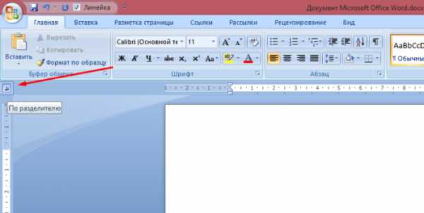 Несколько раз щелкните индикатор табуляции в левой части линейки, пока не отобразится метка табуляции «По разделителю»: .
