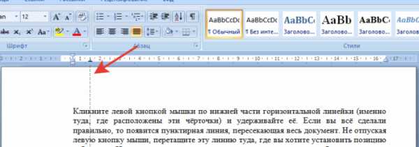 Если кнопку мыши отпустить, позиция табуляции исчезнет, а текст переместится к следующему символу табуляции или на шаг табуляции по умолчанию, который равен 1,27 см.