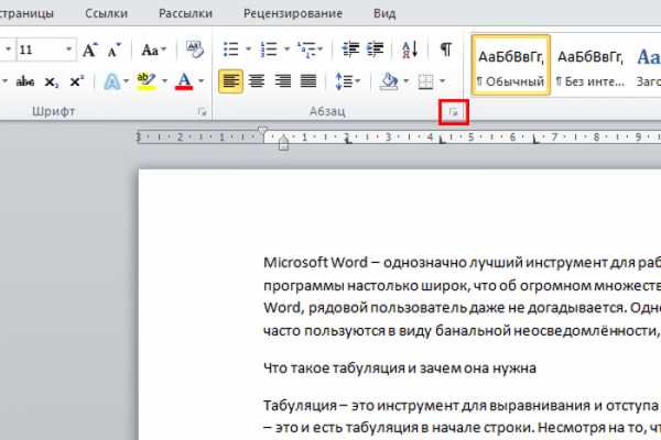 Табуляция в Word – Кнопка вызова диалогового окна «Абзац»