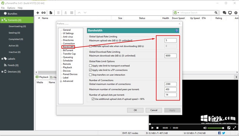 Если вы хотите предотвратить загрузку (или «раздачу») из вашей системы с помощью uTorrent, измените количество слотов для загрузки на торрент на ноль в настройках пропускной способности.