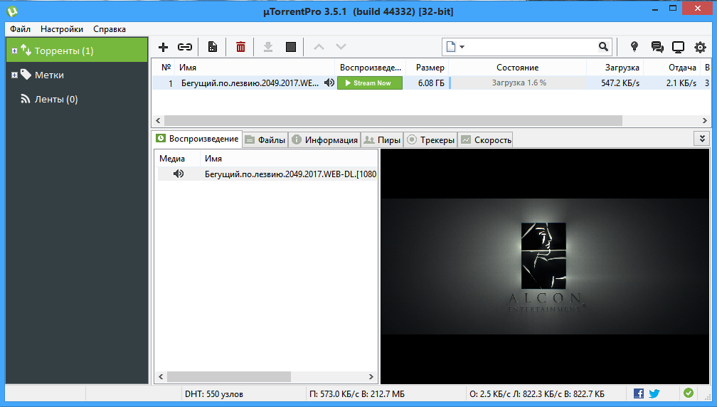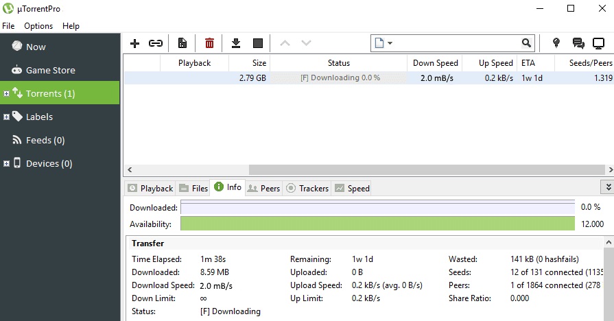 uTorrent включает в себя все, что вы ожидаете от полноценного, надежного торрент-загрузчика : подробная статистика, поддержка RSS-каналов, автоматическое отключение, планировщик загрузок и многое другое. Однако есть пара вещей, которых не хватает uTorrent: полноценный инструмент поиска торрентов и встроенный проигрыватель для предварительного просмотра ваших загрузок.