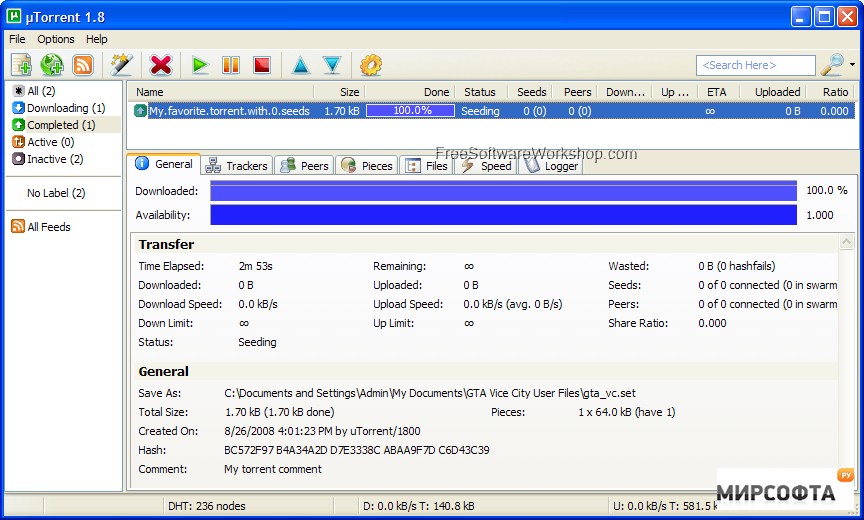 UTTER TIE делает все, что делает стандартный клиент Bittorrent, но встроенный интерфейс Windows делает его высококлассным.0005µTorrent Portable