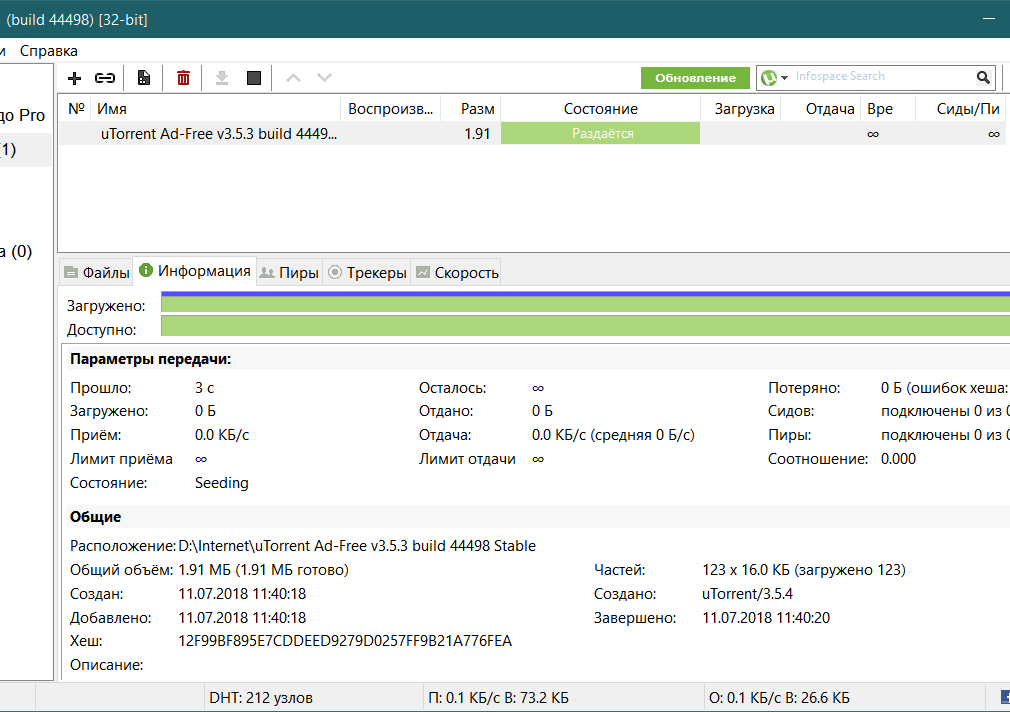 д.) и удобного встроенного теста скорости, облегчающего первоначальную настройку, uTorrent готов. Программа занимает минимум жесткого диска и ресурсов ПК, что позволяет вам загружать большое количество торрентов и по-прежнему иметь возможность использовать компьютер без каких-либо задержек.