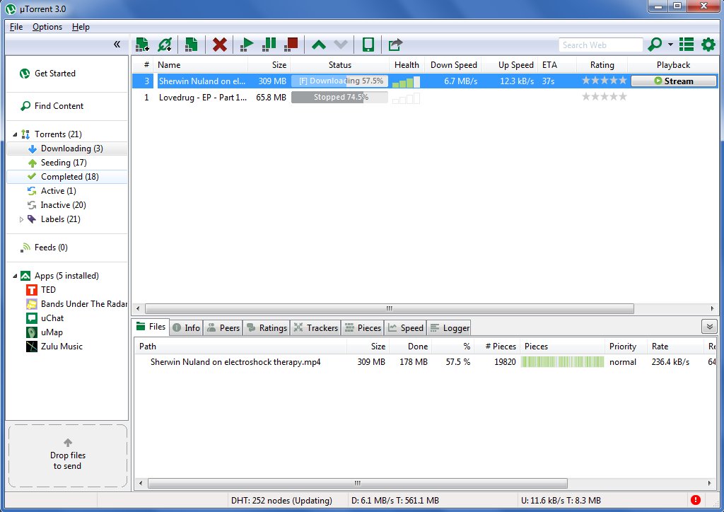 Больше никаких торрент-клиентов и ожиданий закачки! Хотя, честно говоря, для просмотра видео-торрентов на Windows есть более удобные плееры, не требующие дополнительных программ.