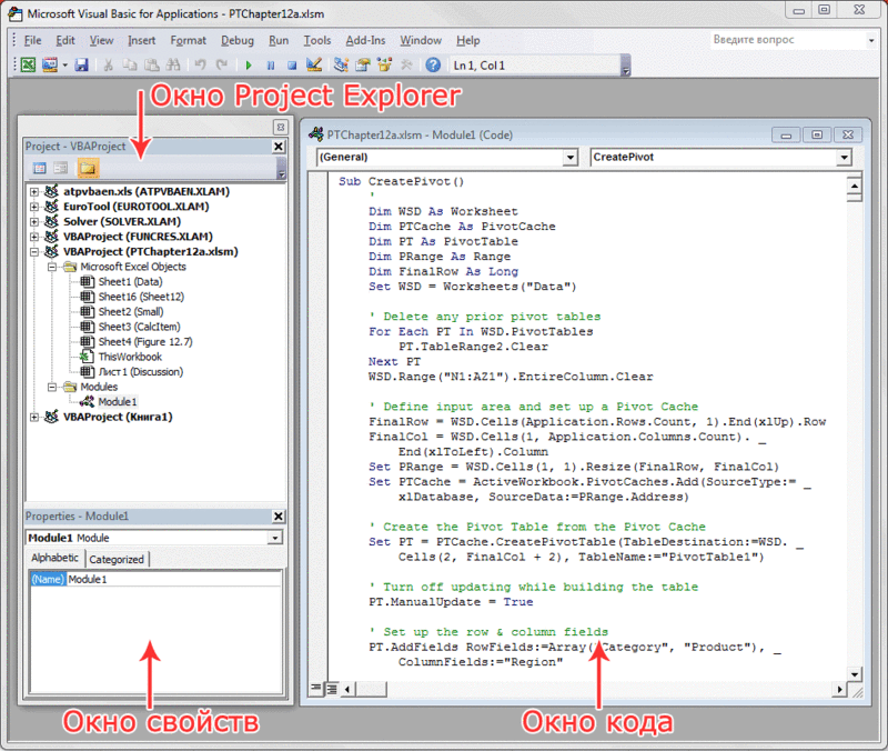 Кодирование с помощью VBA происходит в среде, отличной от стандартного интерфейса Excel.