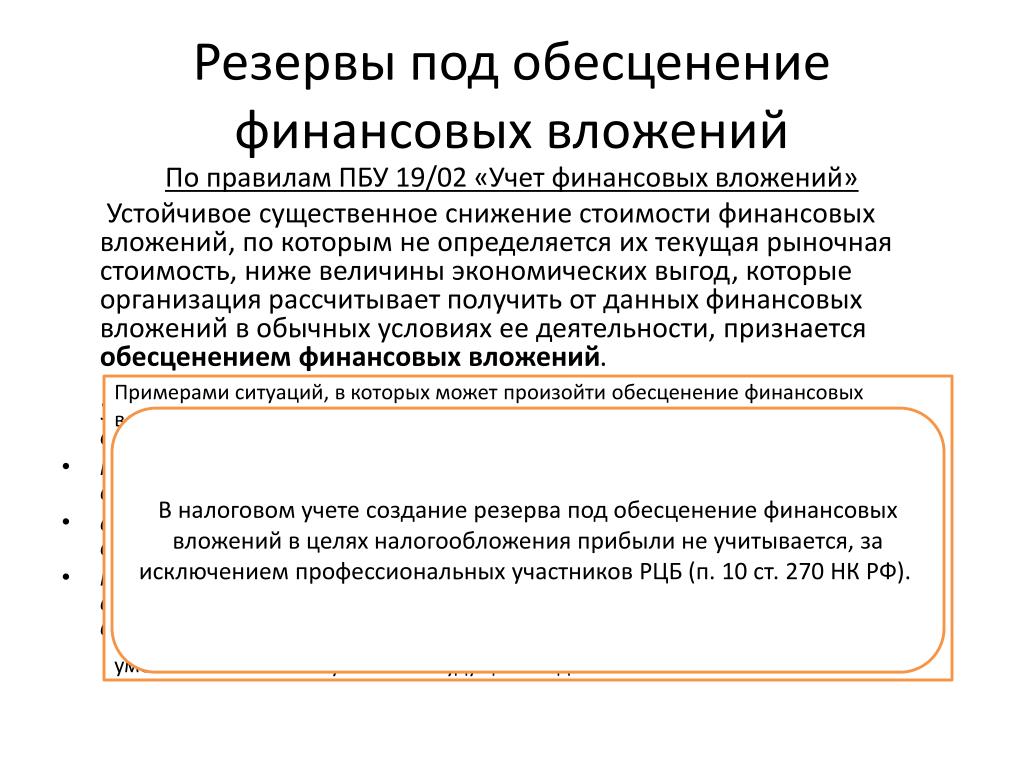 Объекты финансовых вложений (кроме займов), не оплаченные полностью в случаях, когда к инвестору перешли права на объект, показываются в полной сумме фактических затрат на их приобретение. В остальных случаях суммы, внесенные в счет оплаты подлежащих приобретению объектов финансовых вложений, показываются в активе по группе статей Дебиторская задолженность . Для заполнения этой строки используются данные аналитического учета по счетам 58 Финансовые вложения , 59 Резервы под обесценение вложений в ценные бумаги .