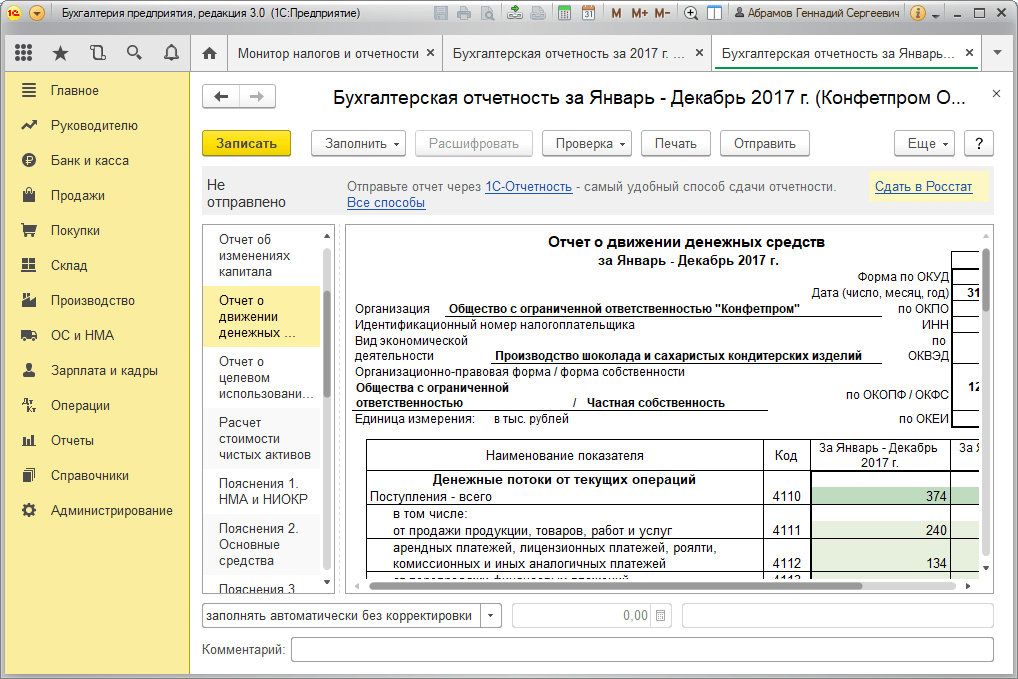 Пример отчета о движении денежных средств
