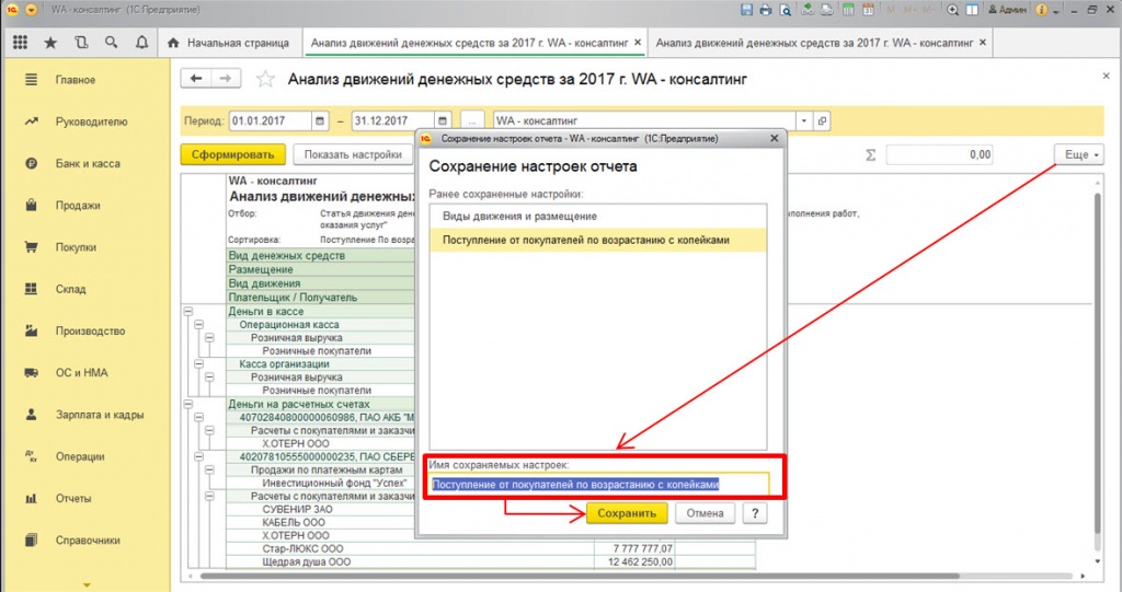 Ниже приведен пример отчета о движении денежных средств: