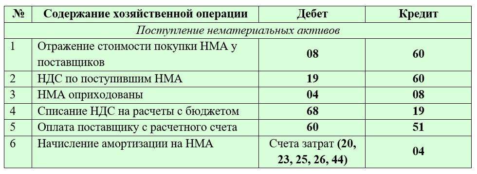 В процессе проведения документа амортизационные расходы и обесценение по нематериальному активу списываются на счет учета нематериального актива.