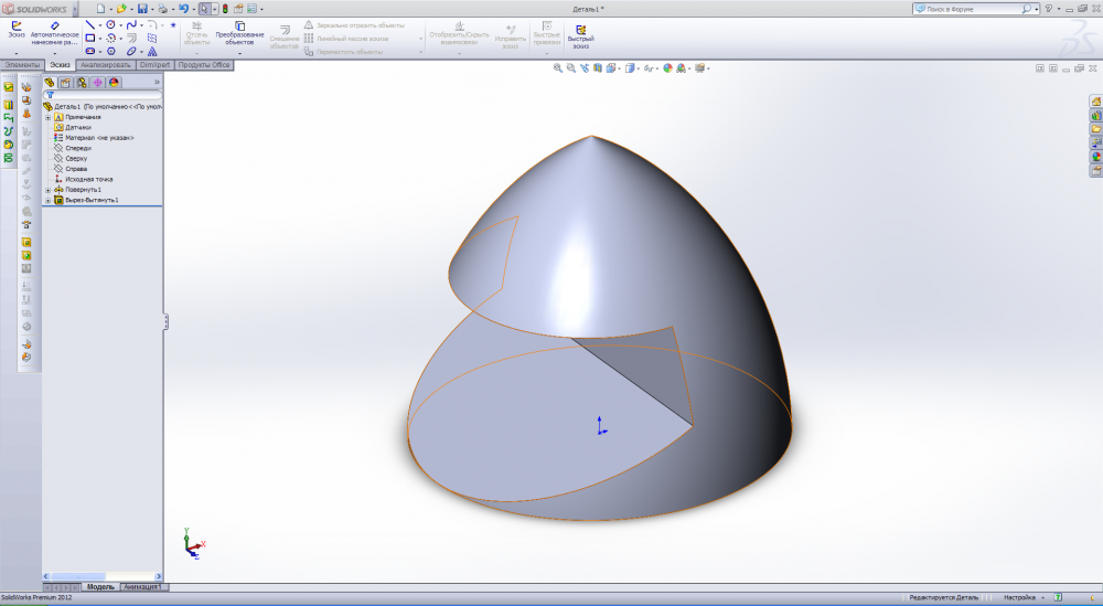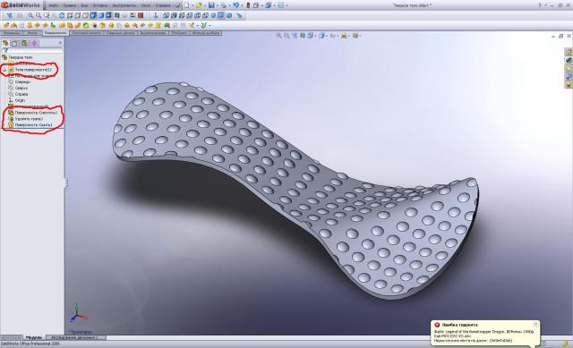 Solidworks позволяет строить детали не только при помощи твердотельного или параметрического моделирования, но и с использованием операций с поверхностями.